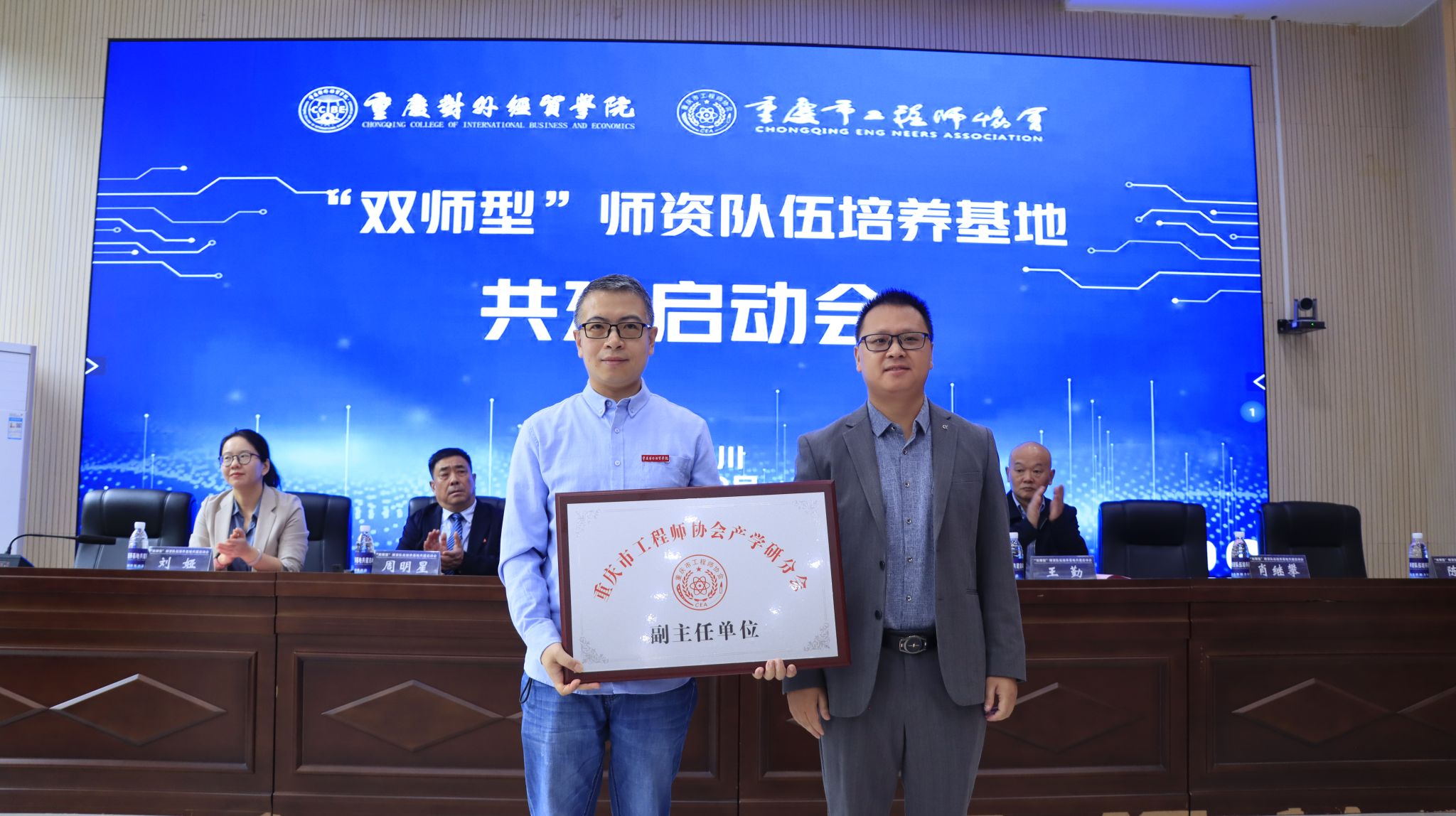 现场授予学校重庆市工程师协会产学研分会副主任单位牌匾