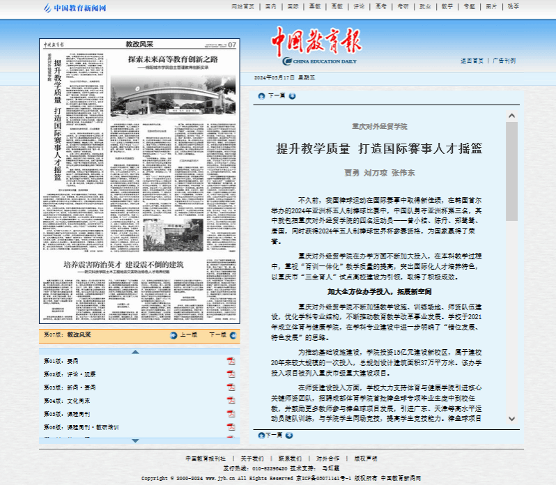 中国教育报报道best365英国体育在线提升教学质量打造国际赛事人才摇篮