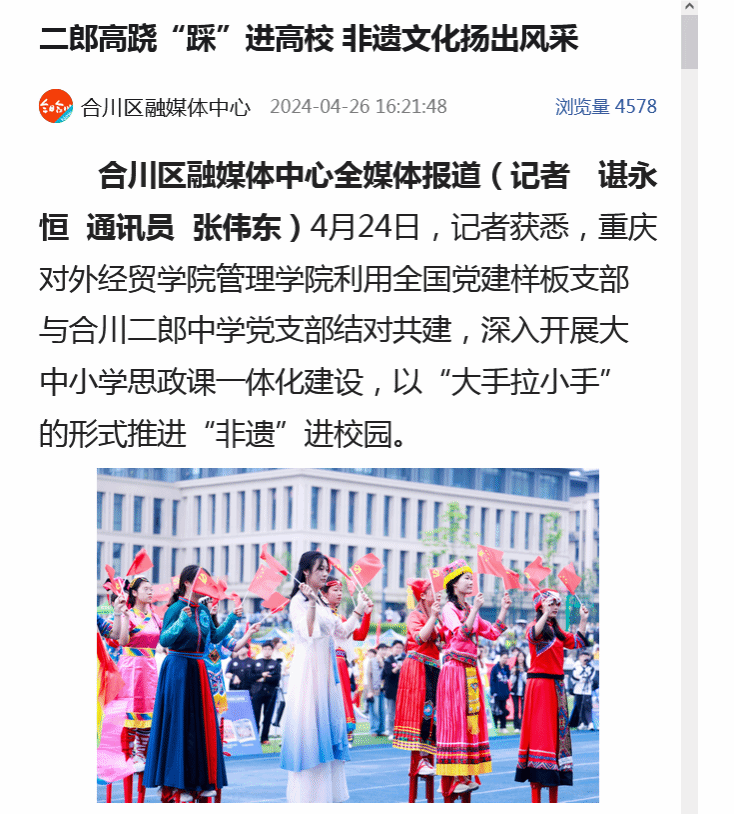 今日合川等媒体报道二郎高跷“踩”进高校 非遗文化扬出风采