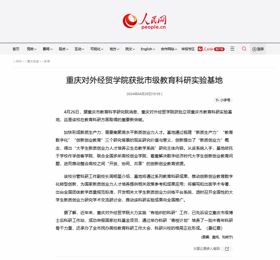 人民网报道best365英国体育在线获批市级教育科研实验基地