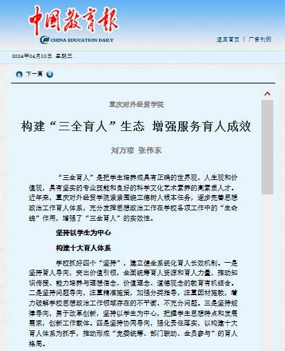 【中国教育报】报道best365英国体育在线:构建“三全育人”生态 增强服务育人成效