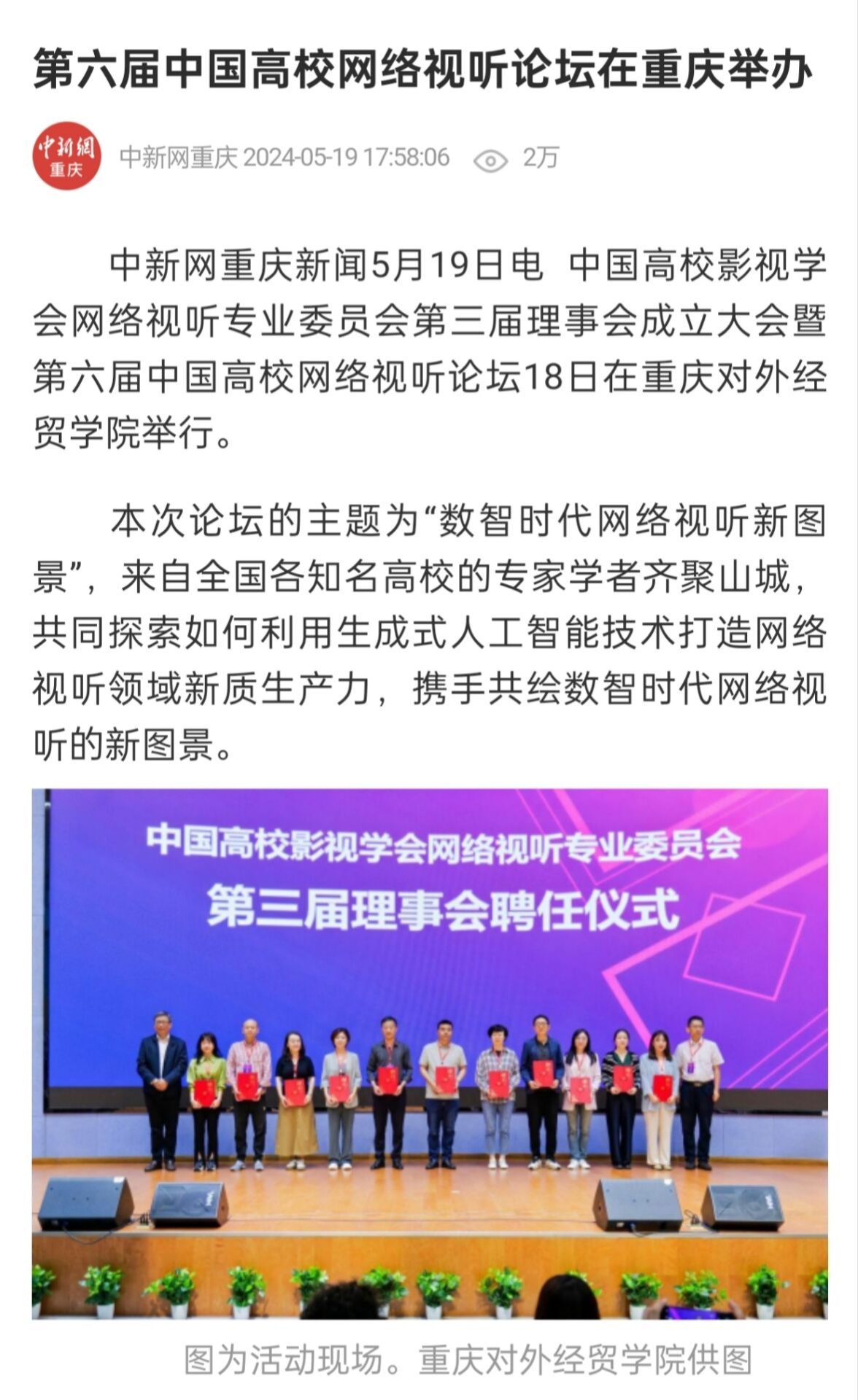 中国高校影视学会网络视听专业委员会第三届理事会成立大会暨第六届中国高校网络视听交流活动在重庆举办
