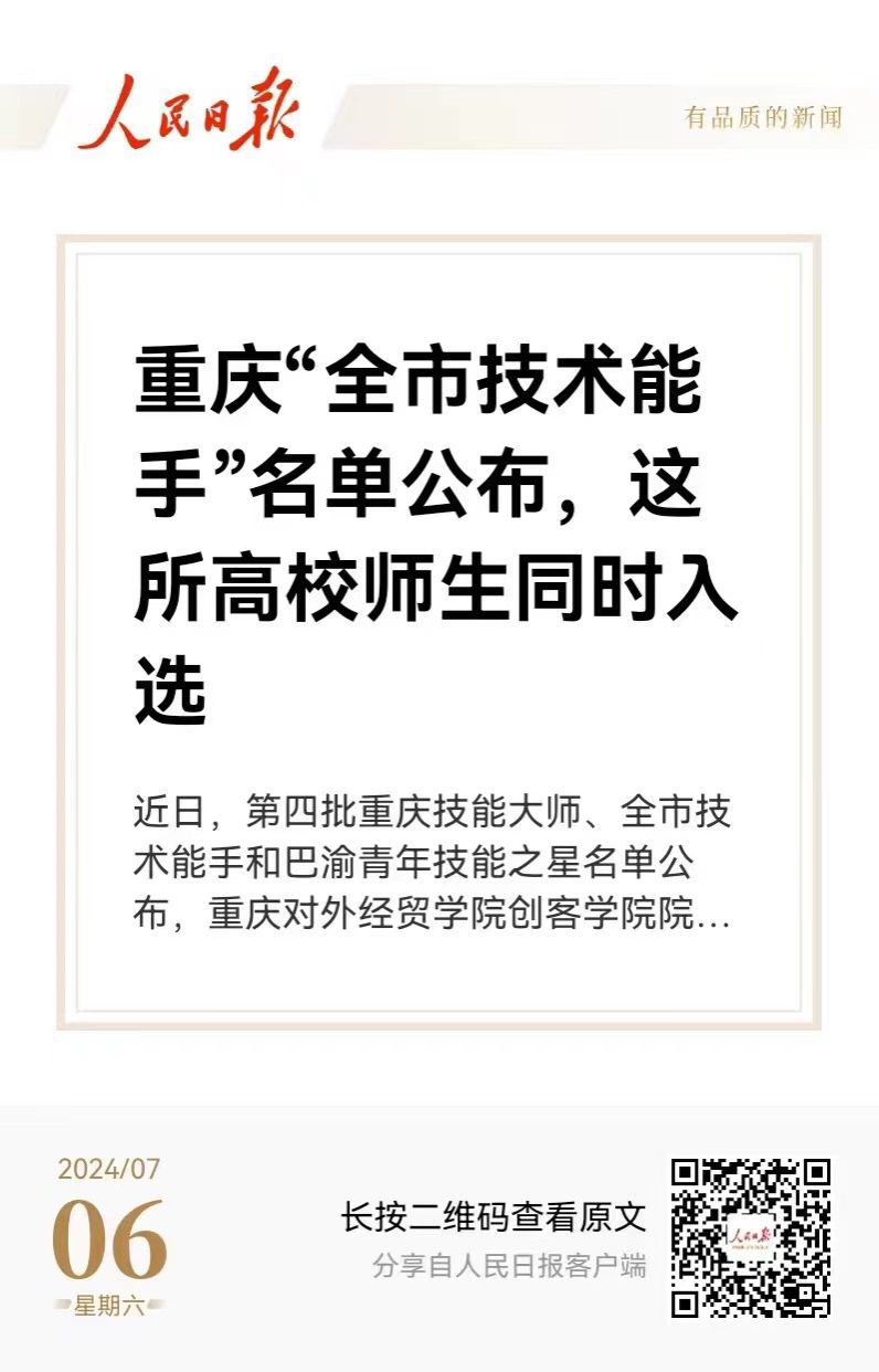 重庆“全市技术能手”名单公布,这所高校师生同时入选