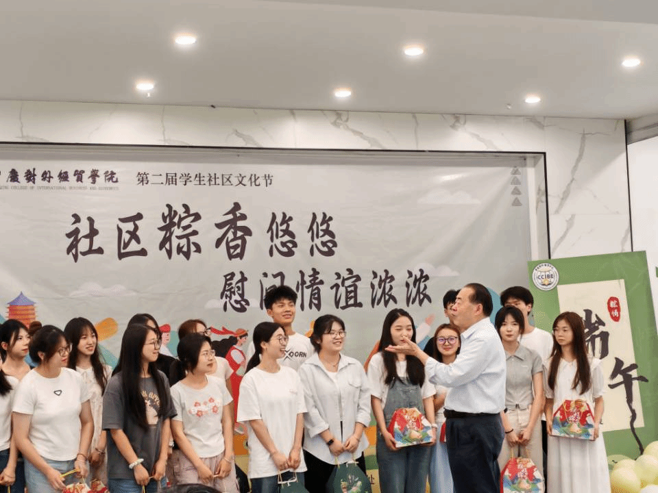 粽香悠悠送关爱,情谊浓浓伴成长。在端午佳节即将来临之际,为进一步弘扬中华民族优秀传统文化,丰富校园文化生活,营造温馨浓厚的节日氛围,体现对广大学子的慰问和关怀,6月6日下午,学校在B校区致园食堂开展“粽香悠悠,情谊浓浓”端午慰问活动。学校常务副校长王乃武、党委学生工作部部长、艺术设计学院院长等领导一行莅临出席,各学院教师及学生代表参与此次活动。