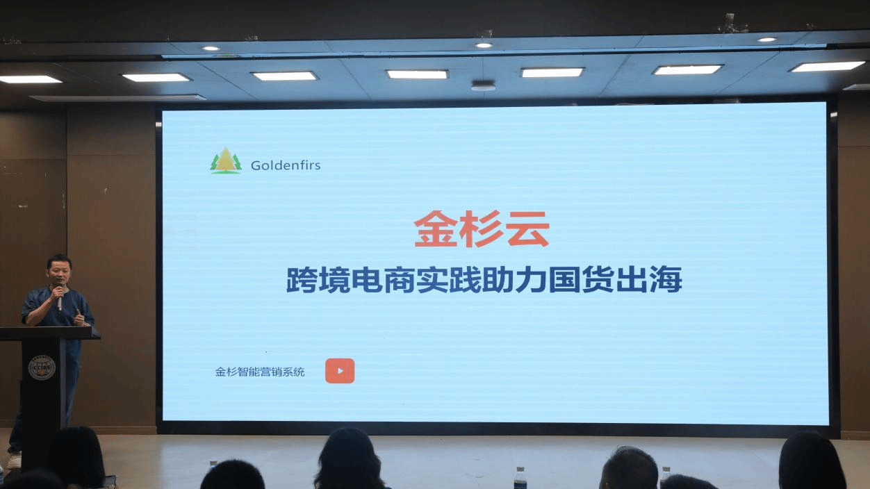 紧接着的报告分享环节,广州金杉国际技术有限公司CEO秦军先生以“跨境电商实践助力国货出海”为主题,深入剖析了跨境电商行业的发展趋势和机遇。他结合企业实际,详细介绍了公司的发展历程、主要业务和技术特点,使师生对跨境电商有了更加清晰地认识。