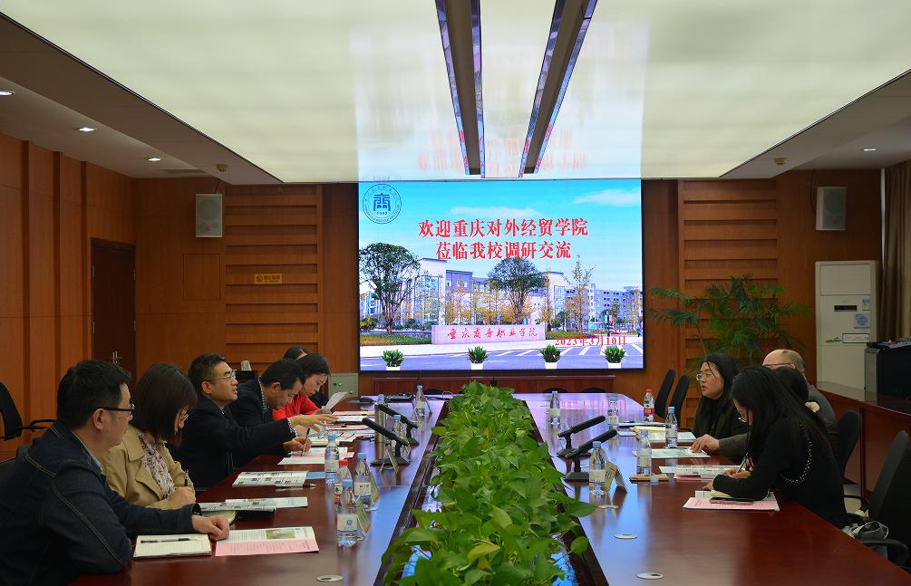 3月10日下午,我校党委书记、督导专员何大海,跨境商务学院院长赵逖、副院长李艳、国际经济与贸易教研室主任吴文平到重庆商务职业学院进行专本贯通人才培养调研交流。重庆商务职业学院党委副书记、院长江涛,副院长贾小波,教务处处长李焱,经济贸易学院党总支书记、院长李春红等参加了交流座谈会。