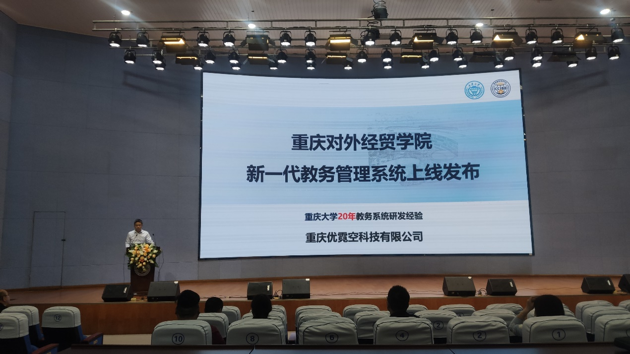 第一阶段即新版教务系统发布会,重庆大学张小洪教授首先宣讲新版教务系统,他从产品介绍、项目情况、系统成效、持续服务四个维度聚焦三类变化,进行了详细的介绍;其次重庆优霓空公司CEO刘骁介绍了新版教务系统的实施计划和培训安排;最后学校副校长杜斗恒就新版教务系统的应用提出了要求。他指出,研发公司与学校不应该是矛盾对立的,而是相辅相成的。各职能部门需结合自身工作,把新版教务系统用活、用全、用尽,不要形成孤岛效应,这个系统不是教务处的系统,而是整个学校的教学服务平台。