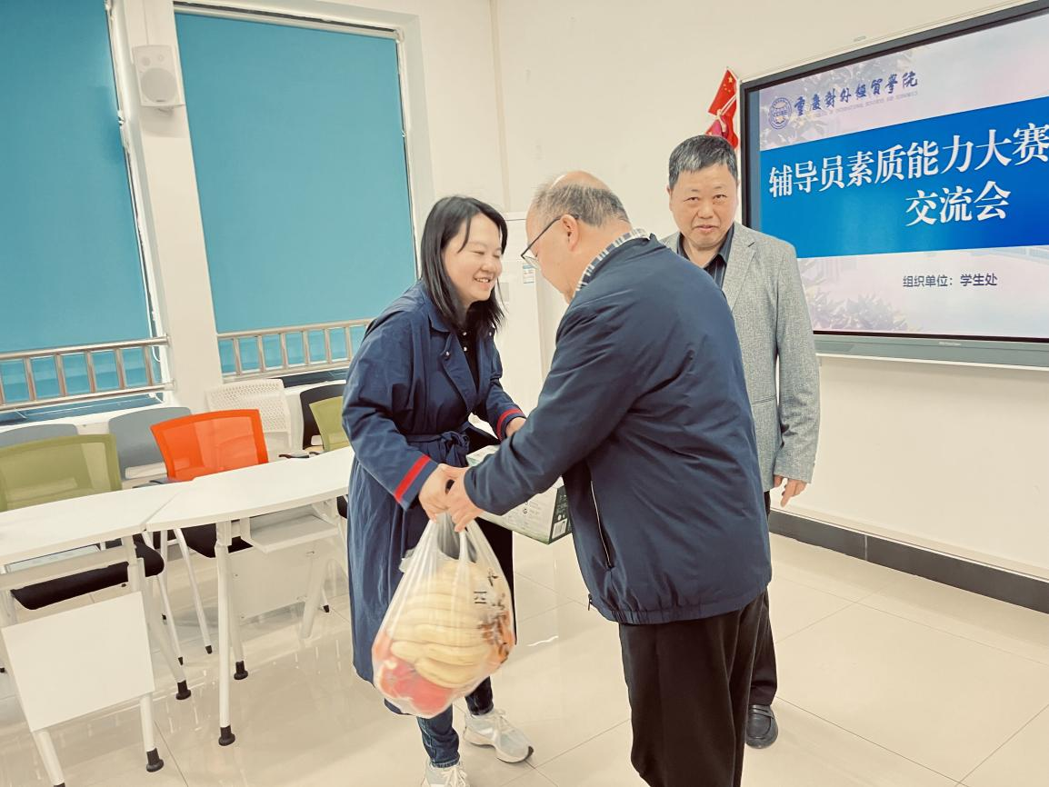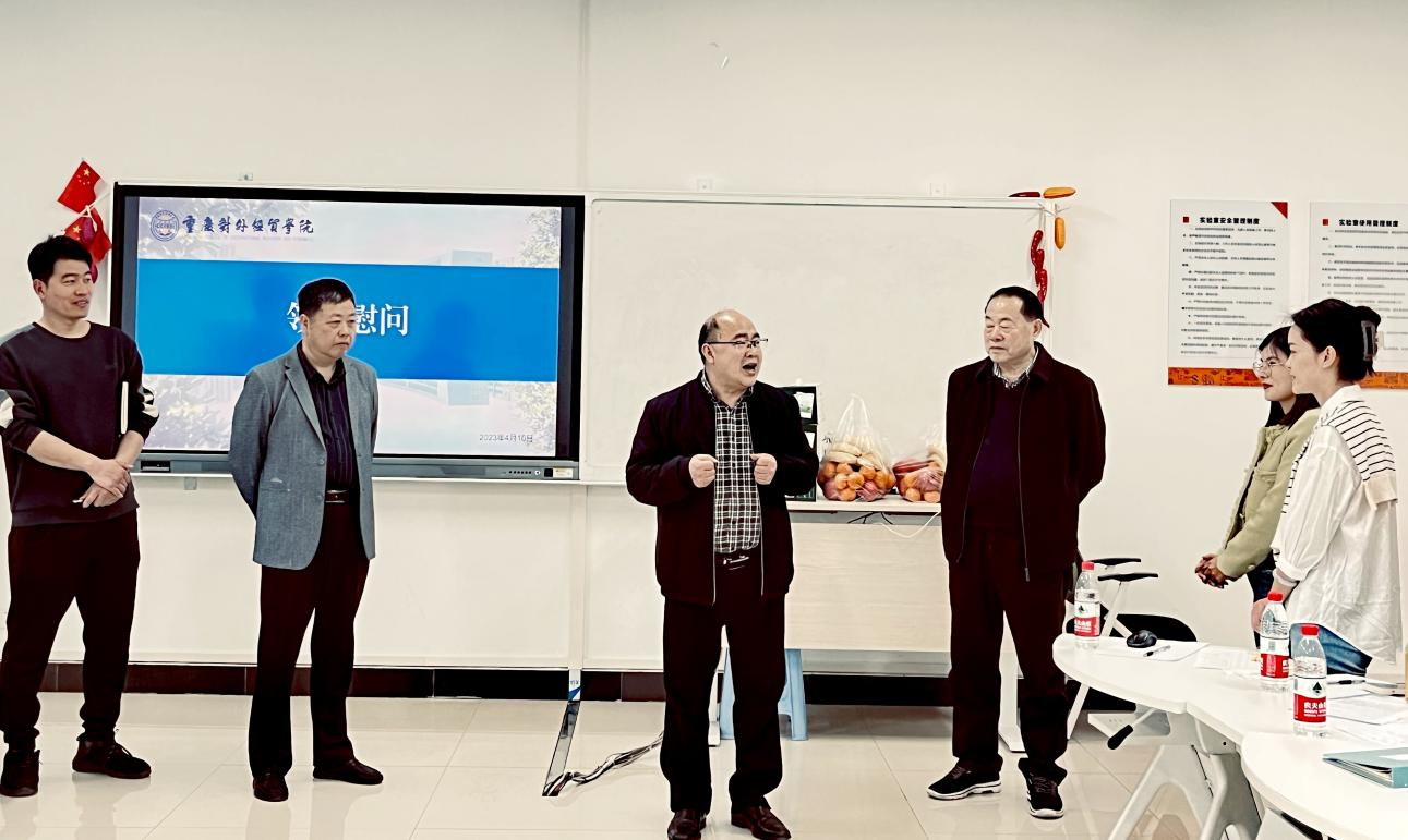 4月10日下午,学校党委书记何大海、常务副校长王乃武、学生处处长伍祥伦、学生处副处长张雪峰一行在9506教室亲切慰问了正在进行辅导员素质能力大赛第二次模拟研讨交流会的我校辅导员段瑞、王杰以及来校交流学习的重庆幼儿师范高等专科学校辅导员张艳、重庆电力高等专科学校辅导员刘洁等4位即将参加市赛的选手。