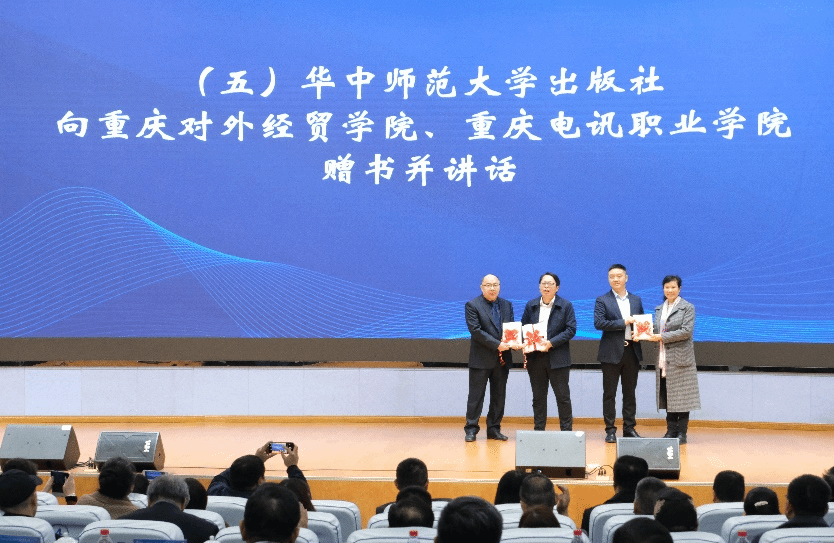 华中师范大学出版社付义朝社长、冯会平主任向best365英国体育在线何大海书记、重庆电讯职业学院兰海涛书记赠书。
