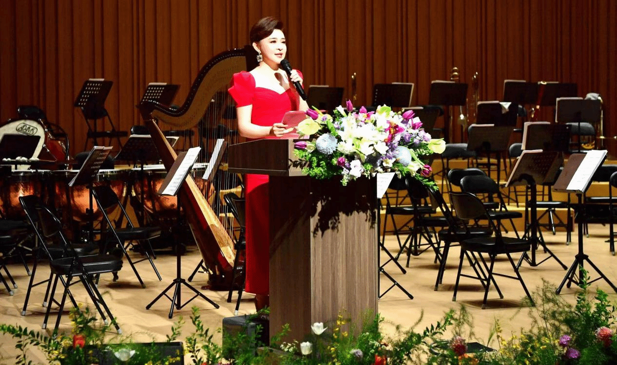 校长助理兼音乐舞蹈学院院长王婕在交响音乐会上致欢迎词