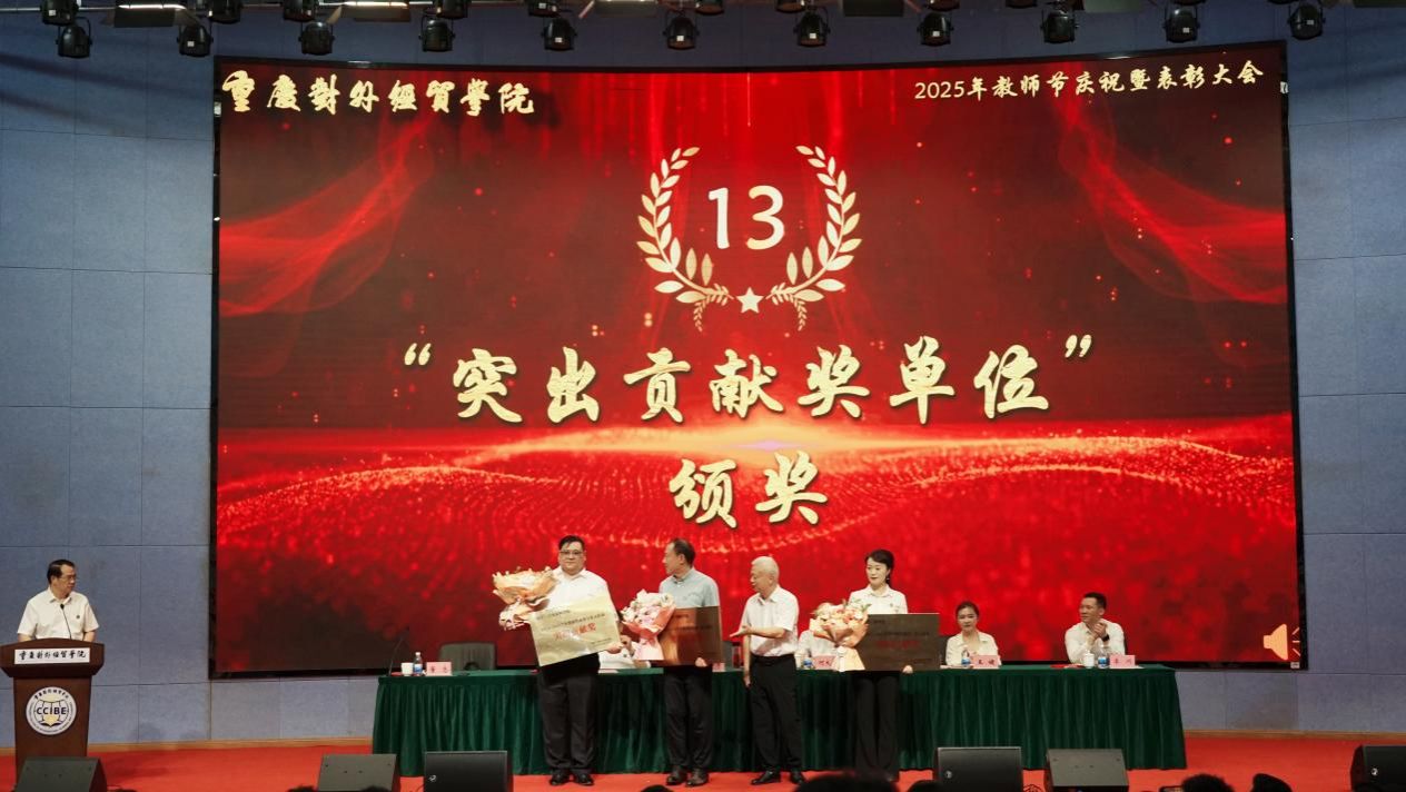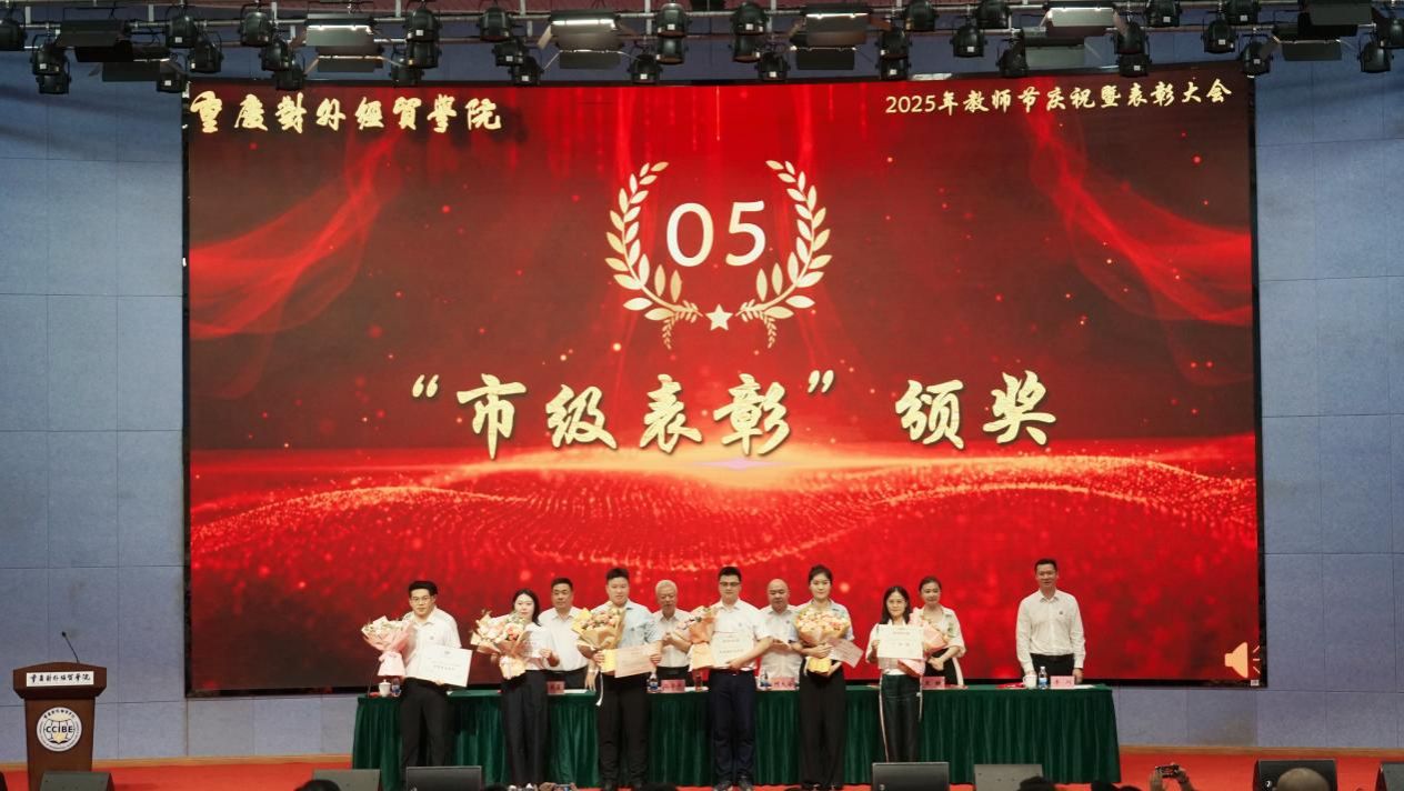 副校长周明星通报2024-2025学年度获市级表彰团队及个人名单并为其代表颁奖;副校长王婕宣读2024-2025学年度优秀教师、优秀辅导员和优秀教育工作者的表彰决定,并为代表们颁奖;副校长李川宣读2025年教师课堂教学大赛获奖名单并为其代表颁奖。