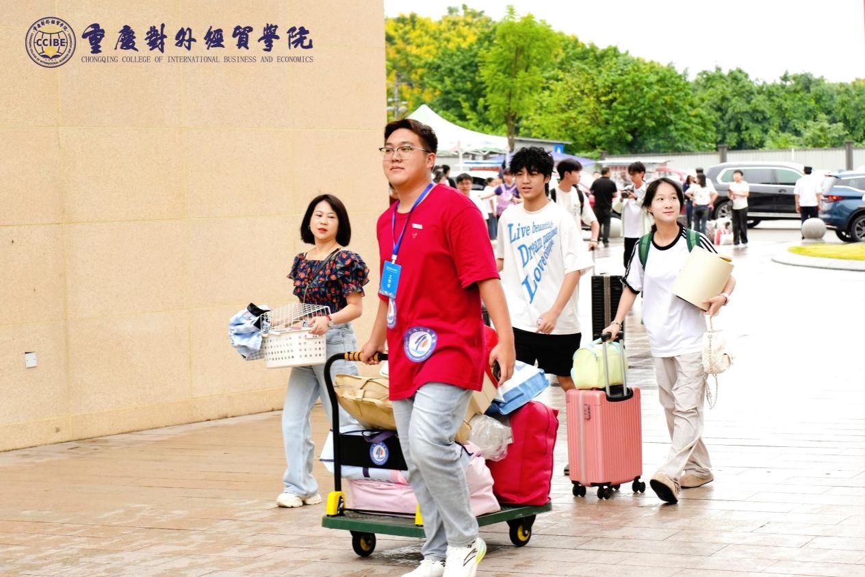 为迎接新生,学校各部门协同联动,精心组织了便捷高效的报到流程。报到现场,各学院的领导、老师和志愿者以热情、周到、负责的态度投入工作。他们指引各学院新生完成报名、缴费、领取物资和寝室入住等流程,努力为新生营造良好的报到环境。同时,校内还安排了休息区、免费领水区、行李寄存区,为新生及家长提供便利。校园各个角落都能看到志愿者的身影,他们主动上前帮忙,耐心解答新生们的疑问,为学弟学妹们提供贴心服务,让新生们感受到学校的关怀与爱护。