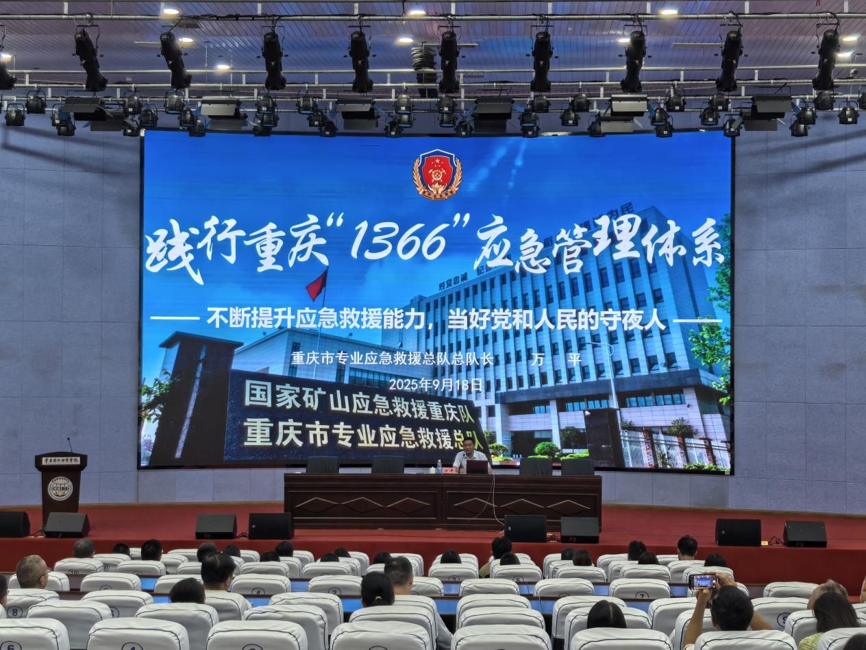 讲座内容系统全面,万平总队长深入阐述了应急管理的定义与逻辑,回顾了其发展历程,并重点解读了重庆市“1366”应急管理体系。他结合专业救援总队的实战案例,生动揭示了突发事件应对的复杂性与专业性。讲座核心聚焦应急管理“进学校”,他指出,校园应急管理需从四个方面着力:一是要将应急知识教育纳入学校安全教育课程体系,确保安全教育的系统性和常态化;二是要完善校园自身的应急管理体系,包括建立健全组织架构、足量配备应急物资、制定并优化切实可行的应急预案;三是要定期组织开展形式多样的应急演练(如疏散、消防、防爆等),明确各类演练的具体类型和实施要求,通过实践提升师生的应急处置能力;四是要加强校园安全文化建设,利用多种宣传渠道和阵地,广泛普及安全知识,营造“人人讲安全、事事为安全”的浓厚氛围。