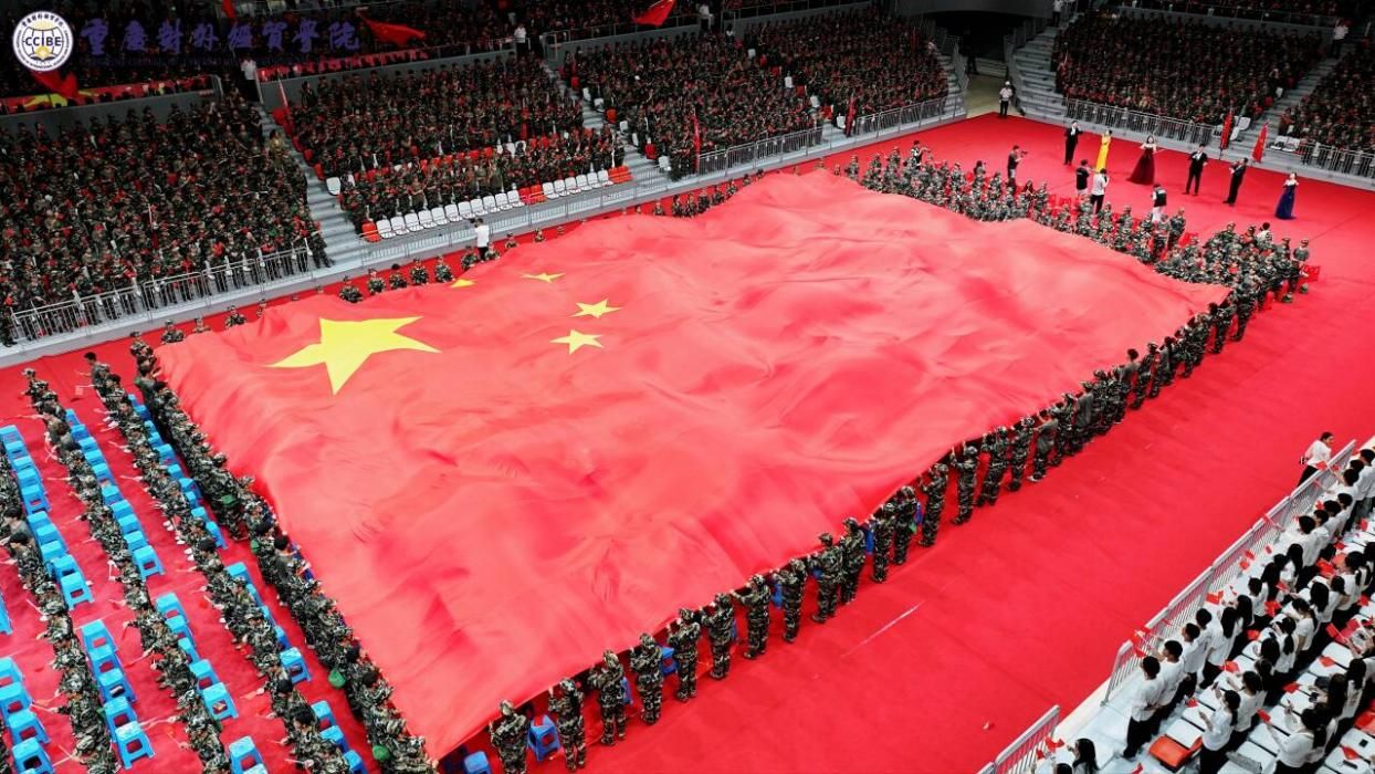 伴随着激昂雄壮国歌,典礼拉开帷幕。