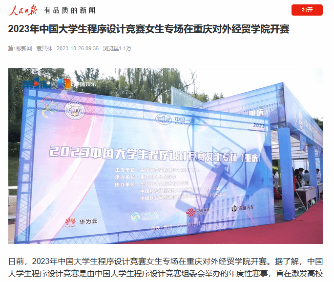央广网:《2023年中国大学生程序设计竞赛女生专场在重庆开赛》
