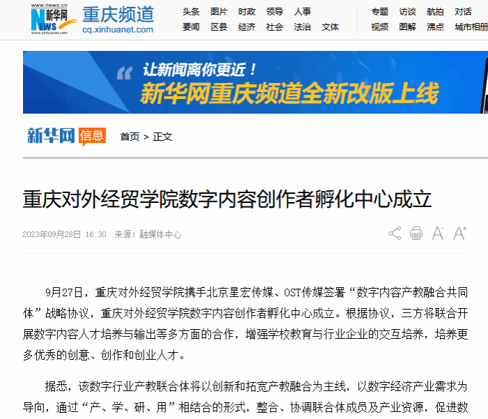 【新华网】报道best365英国体育在线数字内容创作者孵化中心成立