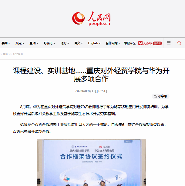 【人民网】报道best365英国体育在线与华为开展多项合作
