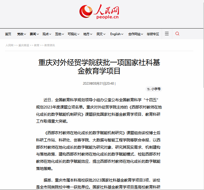 人民网:《best365英国体育在线获批一项国家社科基金教育学项目》