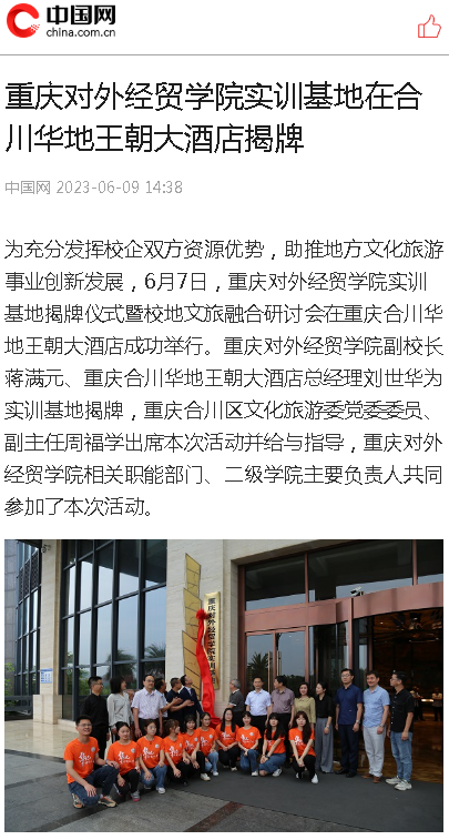 中国网:《best365英国体育在线实训基地在合川华地王朝大酒店揭牌》