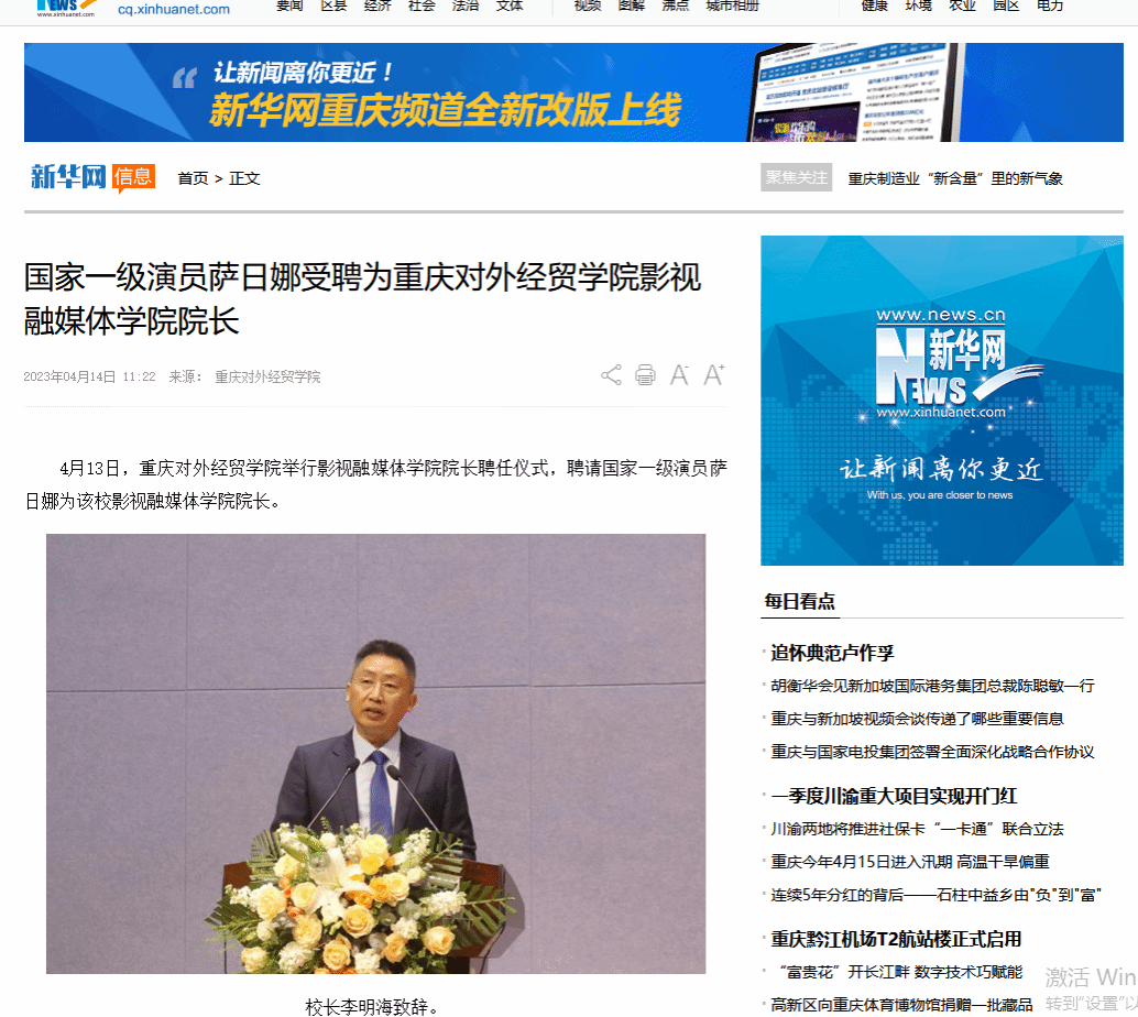 新华网:《国家一级演员萨日娜受聘为best365英国体育在线影视融媒体学院院长》