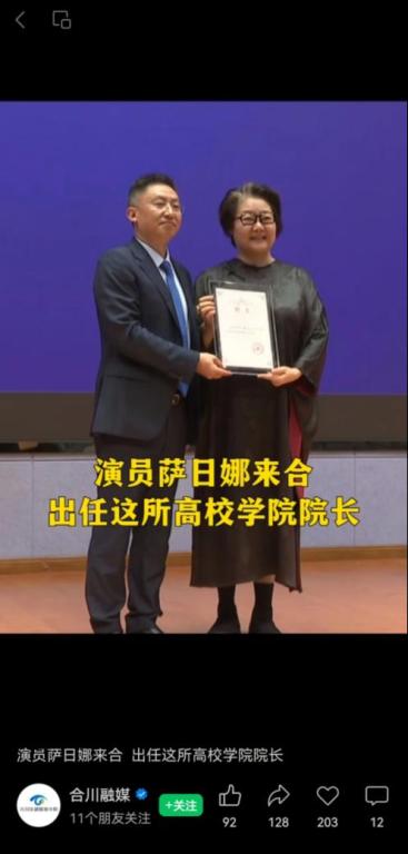 合川发布:《国家一级演员萨日娜受聘为合川这所高校学院院长》