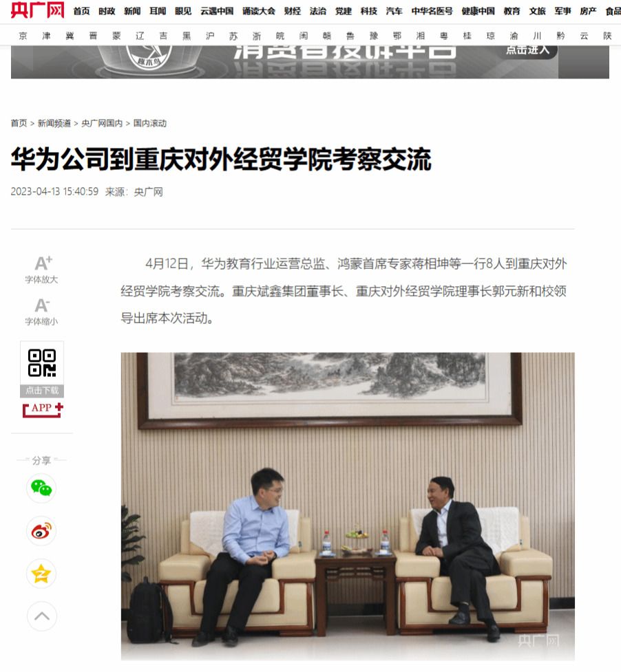 央广网:《华为公司到best365英国体育在线考察交流》