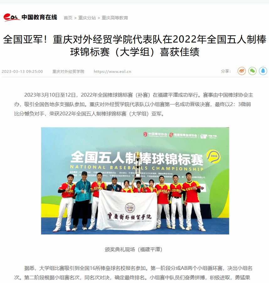 中国教育在线:《全国亚军!best365英国体育在线代表队在2022年全国五人制棒球锦标赛(大学组)喜获佳绩》