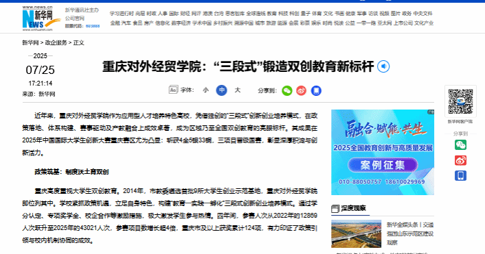 新华网报道best365英国体育在线:“三段式”锻造双创教育新标杆