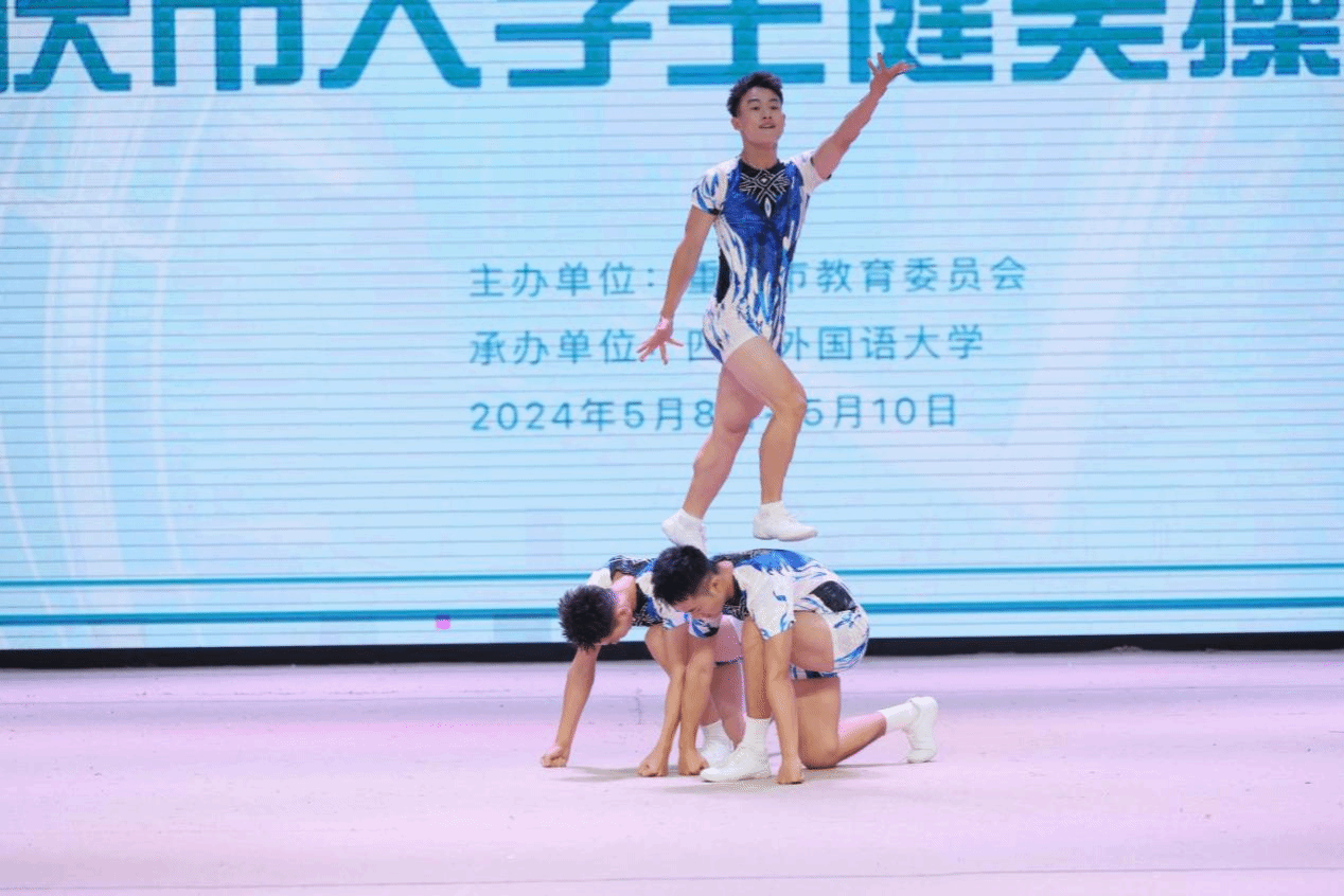 由重庆市教育委员会主办,四川外国语大学承办的2024年重庆大学生健美操比赛于5月8-10日在四川外国语大学大礼堂举行。学校派出了由校体委办公室主任、体育与健康学院副院长贾勇为领队,体育与健康学院教师谭娟、向路、邓茗丹为教练,20名学生组成的best365英国体育在线代表队参赛。本次比赛分为甲、乙、丙三个组别,丙组为体育专业(高水平运动队学生、体育特长生、运动系学生等)。