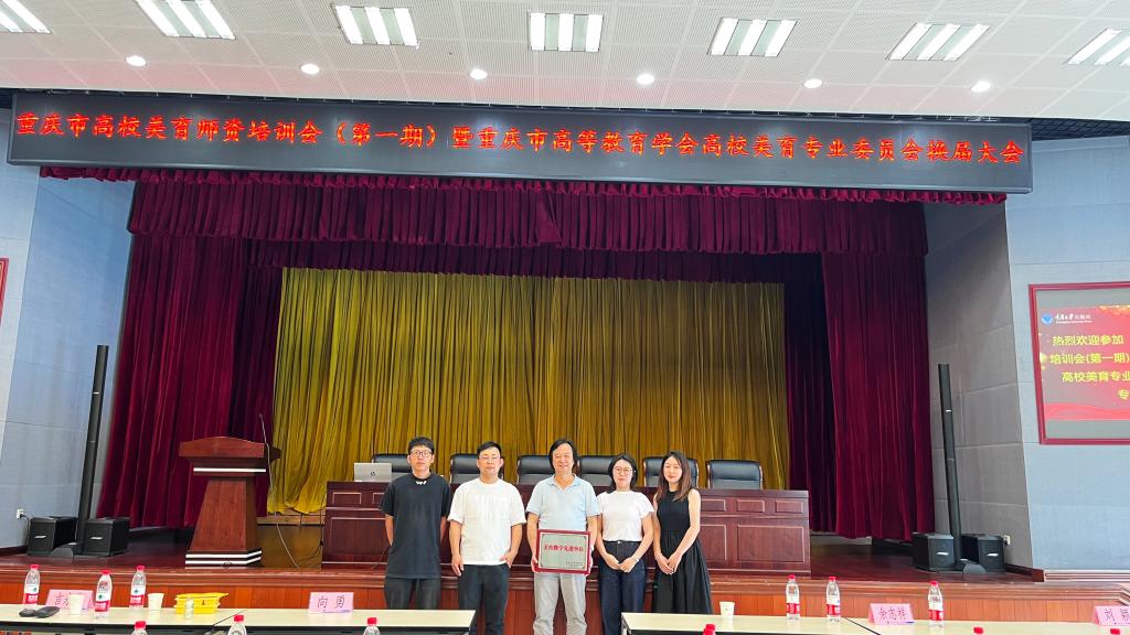 2023年5月27日,重庆市高等教育学会高校美育专业委员会换届暨重庆市高校美育师资培训会在重庆大学出版社多功能厅举行,本次会议由市高教学会高校美育专业委员会主办,重庆大学出版社承办,重庆师范大学美育研究院协办。此次大会在高教学会美育专委会第三届理事会秘书长马健教授的主持下进行了两届美育委员会换届以及重庆市高校美育师资培训,并对第三届重庆市美育教学先进单位进行表彰,学校艺术设计学院荣获“重庆市美育教学先进单位”荣誉称号。