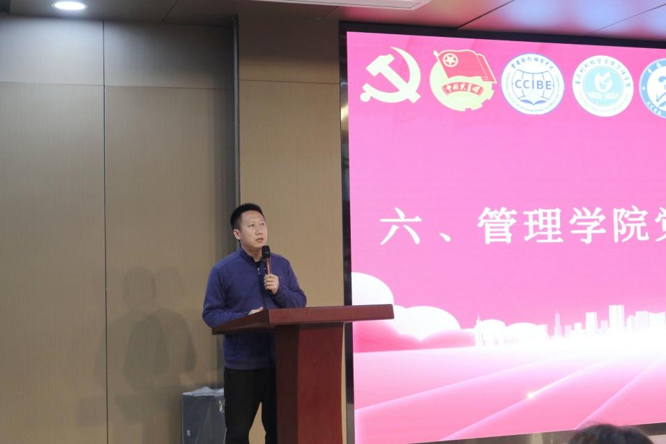 管理学院团总支书记曹巧玲老师宣读管理学院关于《成立‘青春文体团’的通知》,李安平院长和周万春书记为“青春文体团”揭牌、授旗,以示“青春文体团”正式成立。