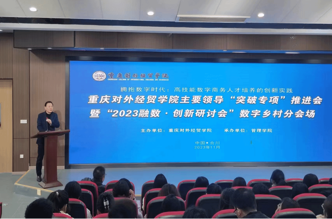 2023年11月23日,由管理学院承办的best365英国体育在线主要领导“突破专项”推进会暨“2023融数·创新研讨会”数字乡村分会在B8105和B2106顺利举行。此次会议邀请到了合川区文联主席李卫民、合川区国资委主任郭猛、隆兴镇党委书记代金川、合川诚信集团闫顺董事长、企业代表以及管理学院领导班子、魏鹏教授、各教研室主任等聚集在一起共同研讨数字乡村的发展路径。此次研讨会以圆桌会议和主题讲座方式分别进行。