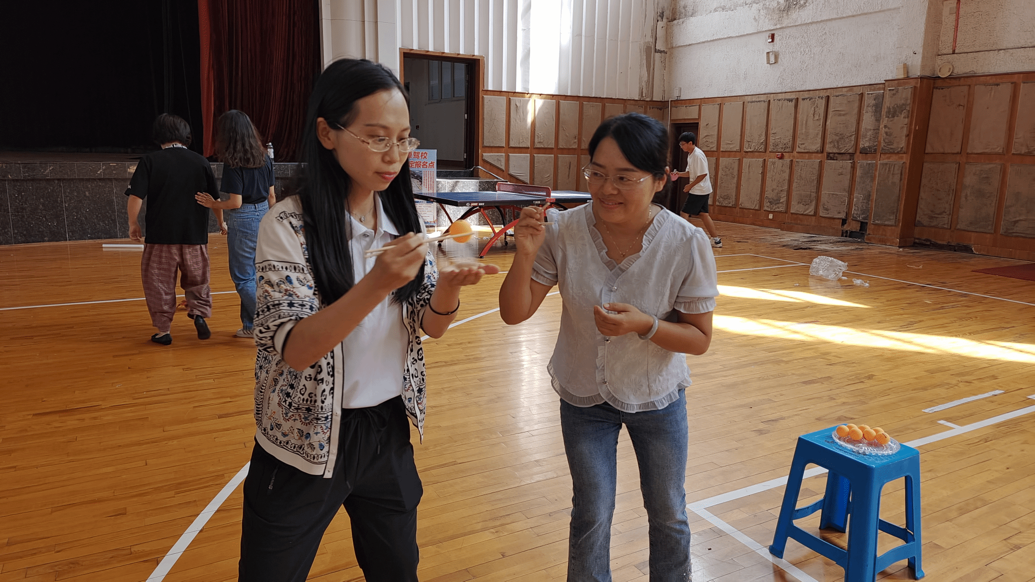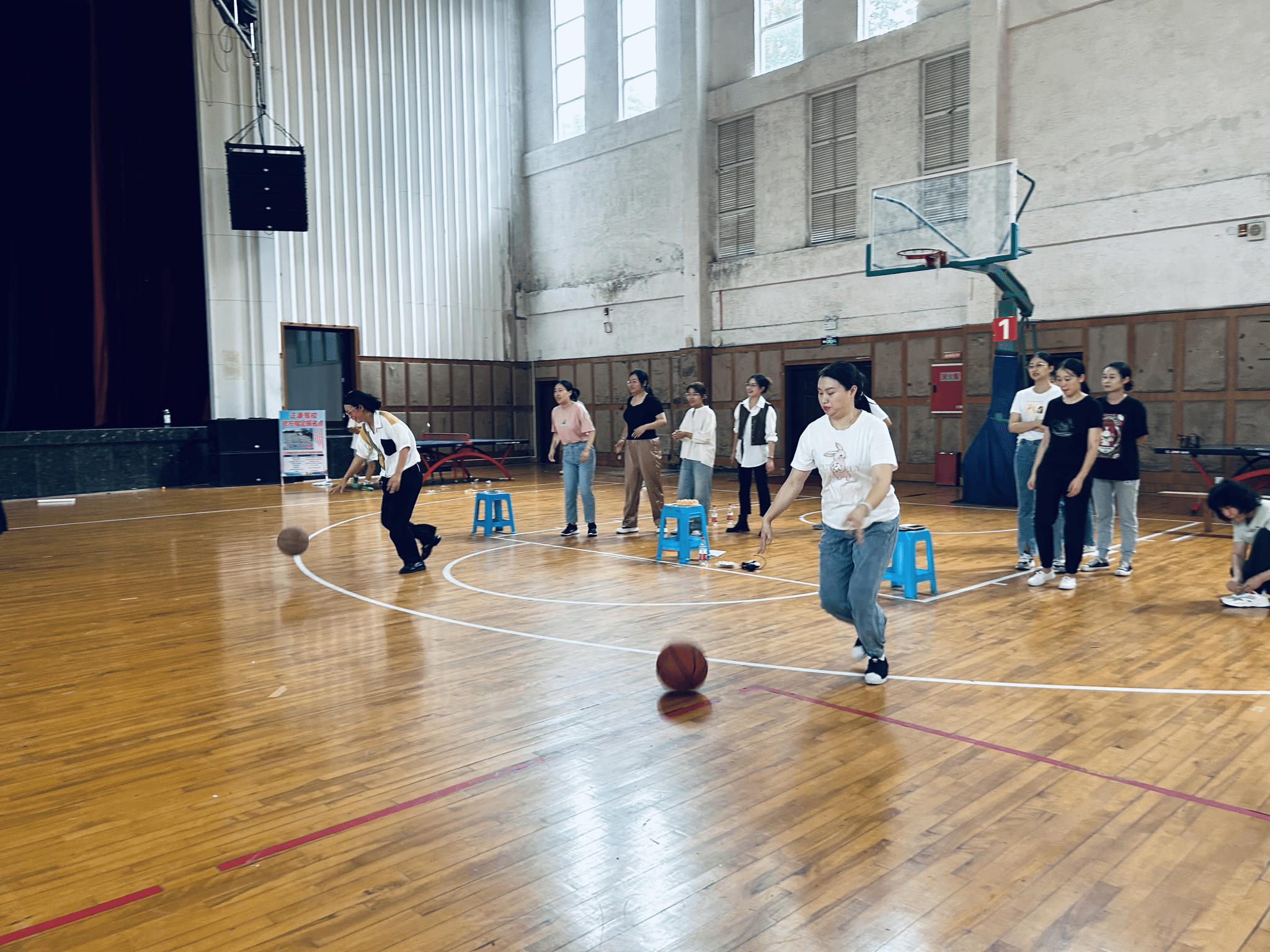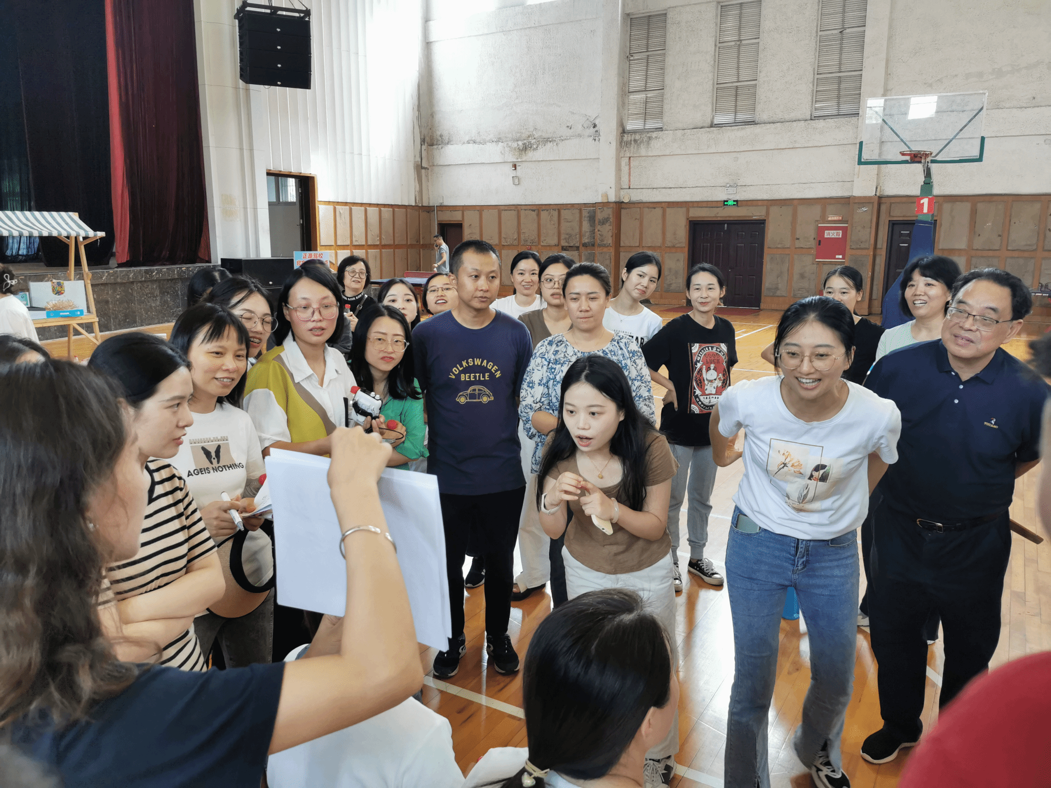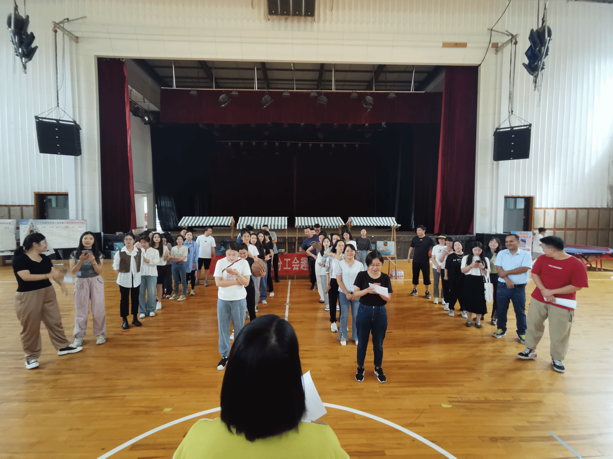 在“筷”乐传递游戏中,老师们小心翼翼用筷子传递乒乓球,彼此鼓励,默契配合,让全场气氛瞬间燃起来;在“篮”不倒你游戏中,老师们手脚并用、花样过关,依次通过拍篮球、踢毽子、跳绳障碍,铆足劲为团队获胜而努力,气氛紧张又有趣;在“你比划我猜”游戏中,老师们手舞足蹈、滔滔不绝,使出浑身解数表达词汇,瞬间将活动氛围推向高潮。