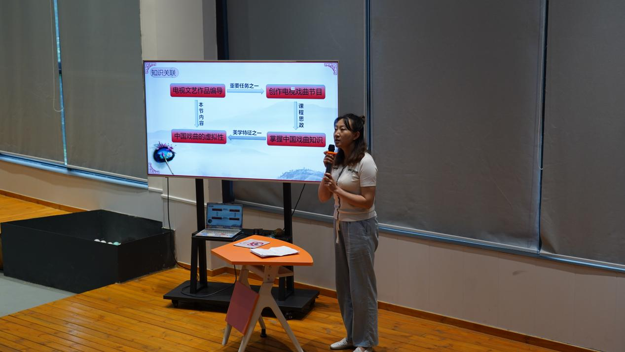 6月15日,广播电视编导、网络与新媒体、数字媒体技术三个专业分为专业技能和教学能力两个维度,包括文创产品设计、数媒产品设计、广告片创作、专题片创作、微课等形式。教师们一一上台讲述创作理念与思路,各抒己见,共话教学相长。