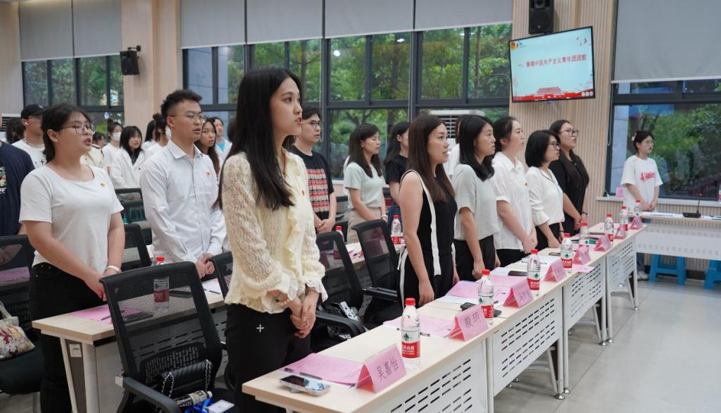图为参会人员齐唱共青团团歌
