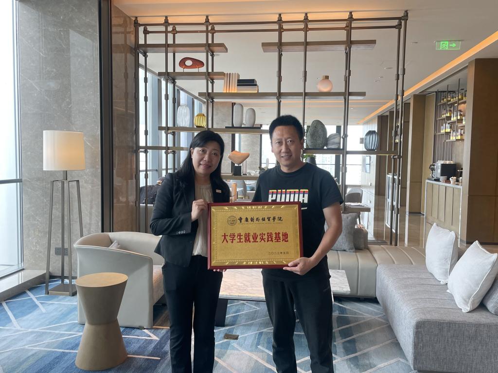 一到酒店,人力资源部周女士就带领大家参观了酒店大堂,餐厅,并对酒店客房类型,酒店设计理念进行了详细的介绍!接着,双方在酒店行政会客室进行了畅谈。期间,希尔顿酒店人力资源总监曹丽女士对酒店的创办背景、发展历程、当前主营业务以及酒店发展战略,员工福利待遇等予以介绍;管理学院周万春书记针对管理学院市级特色专业旅游管理专业师资队伍、人才培养模式以及教学实习实训等内容向酒店方进行了详细的介绍,同时也邀请酒店方代表到管理学院参观考察,以便进一步交流合作,共同培育适合社会需要的人才;就业中心副主任周昊老师就我校的办学特色,其他相关专业,双选会等事宜进一步进行了介绍,本次会谈学校和酒店双方就毕业生就业和实习生管理等方面均发表了意见,互通有无,并纷纷表示期望创建丰富多彩的校企合作模式,将“走出去”和“引进来”相融合,共同打造合作共赢的新局面,携手为促进重庆产教融合、经济发展做出贡献,共同培育更多优质人才!最后,双方举行了大学生就业实践基地授牌仪式,并合影留念。