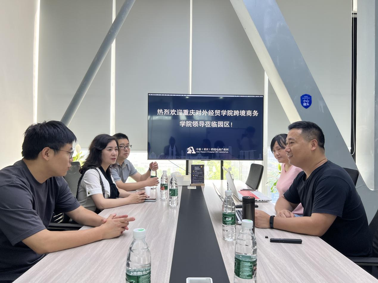 为响应教育部部署的访企拓岗促就业专项行动号召,深化产教融合,贯彻学校“内涵发展、产教融合、服务地方、形成特色”的办学思路,进一步加强跨境商务学院与企业的良性互动,帮助学生高质量就业。2023年5月29日,跨境商务学院院长赵逖、党总支书记任伟、学院办公室主任刘坤奇及学院校企合作负责人段瑞一行赴中新(重庆)跨境电商产业园进行考察交流。