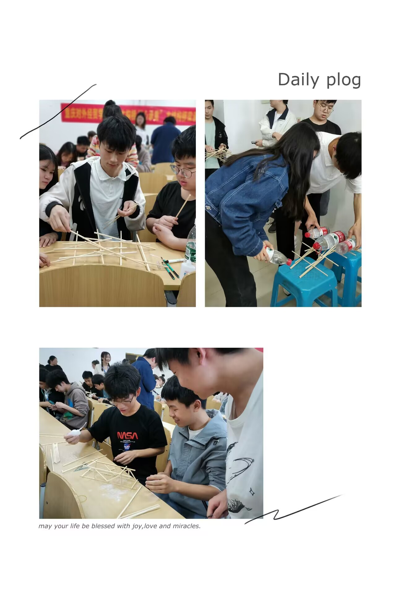 4月27日,在合川A校区3302教室,正在上演一出“比谁负重多”的有趣戏码。木结构桥梁承重大赛,通过团队协作搭建精巧的桥梁模型,让科技不再流于书本,以实践成果说话,同学们的科学创新精神和团队协作意识得到了极大的提升,激发了同学们探究科学的热情。