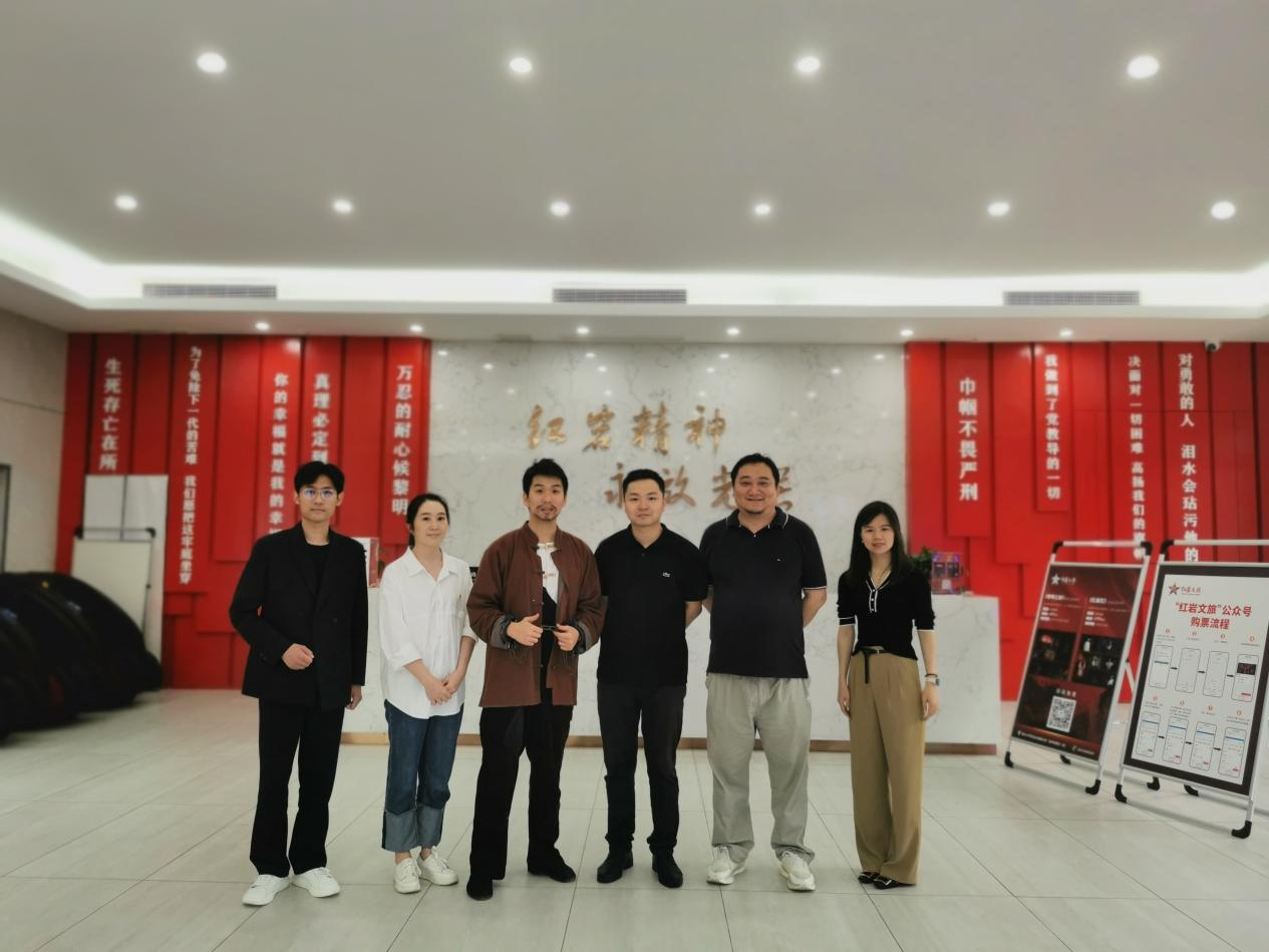 随后,影视融媒体学院一行人与《红岩红》项目负责方蓝海众浪文化科技(成都)有限公司教育投资部副总裁秦立栋以及剧目负责人展开交流。