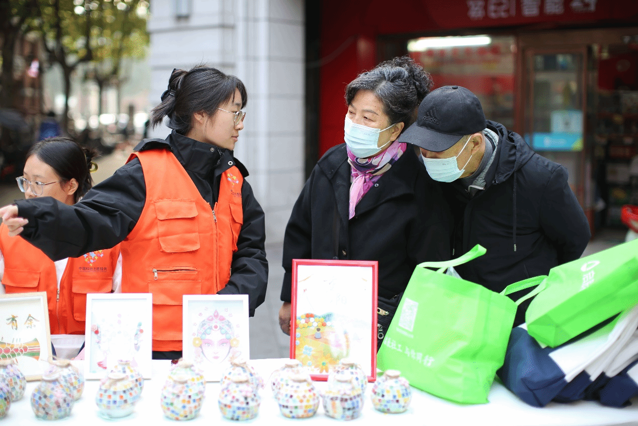 通过展示认知症训练小组成员所制作的花瓶、贴画等手工艺品,展示认知症患者(高风险群体)的风采与能力,让居民感受到即使是认知症患者(高风险群体)在日常生活中具备一定的能力,能够完成生活事件,在日常生活中要关爱帮助认知症患者(高风险群体),避免刻板印象和另类眼光。