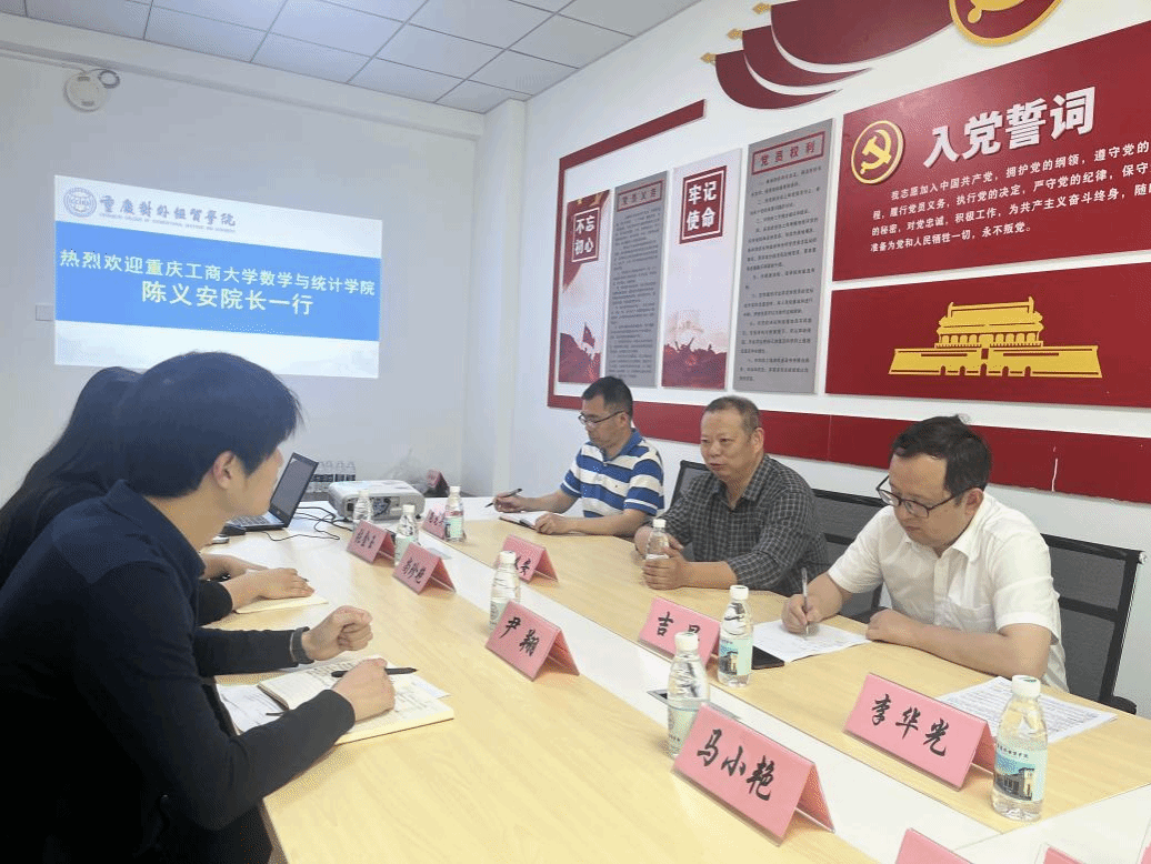 活动中,陈义安院长与尹翔书记分别就双方学院的组织架构、专业设置及招生规模进行了深入细致的介绍。陈院长详细了解了数学与计算机学院各专业研究生的报考情况、上线率及就业前景,并热情欢迎我校学子报考重庆工商大学。陈院长分享了当前各专业研究生的就业趋势与市场需求,就如何更好地促进学生就业展开了深入的探讨与交流。