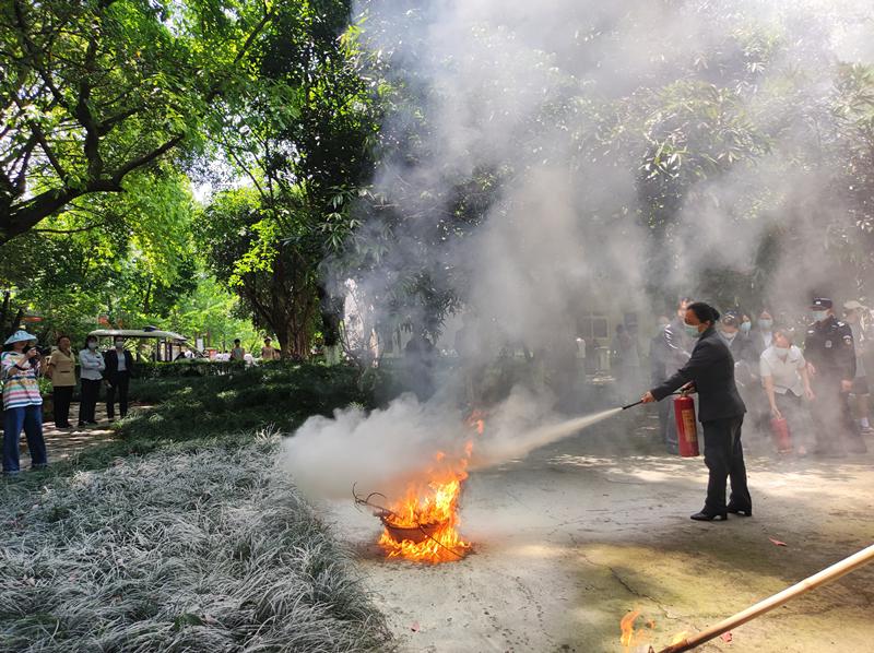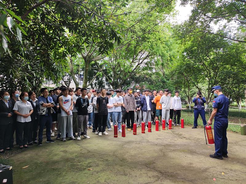 在集合地点,合川区消防救援支队教官对在场的人员进行消防安全知识培训和灭火演练。教官强调:希望每位师生员工,都要熟悉掌握消防应急逃生疏散路线,不断增强安全意识,提高应对突发事件的应变能力和逃生自救能力,自觉远离火灾,学习自救本领,共筑平安校园。