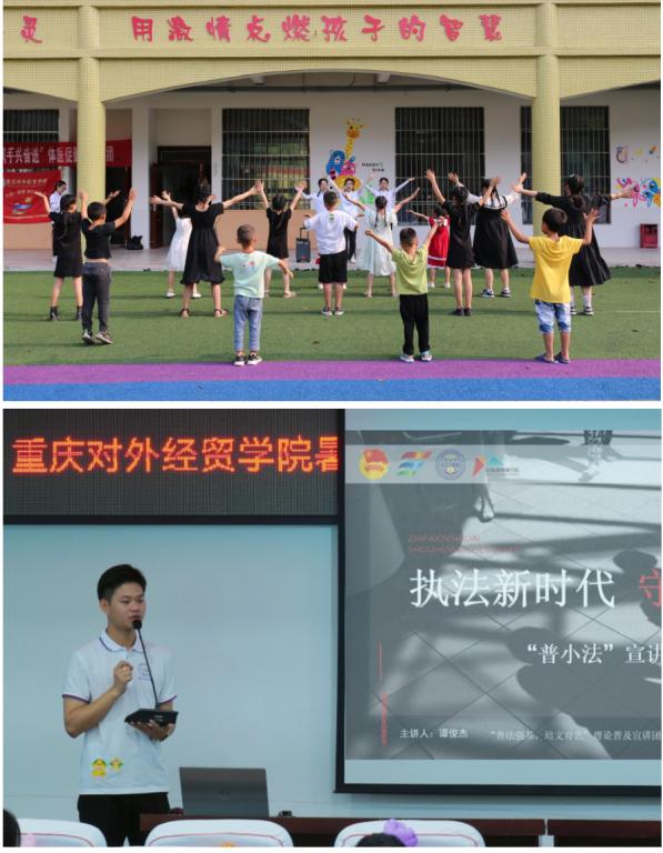 学校发挥青年学生智力优势和专业特长,助力青少年儿童综合素质的培育与发展。进行深度支教,我校多支队伍从课业帮扶、安全教育、心理健康、法制宣讲、手工制作等角度开展50余场的支教活动,将乡村振兴与育人相结合,为提高乡村教育质量贡献青春力量。开设“七彩课堂”,外语外贸学院、数学与计算机学院、体育与健康学院、影视融媒体学院、学前教育学院,校级学生组织等立足专业特色开设心理健康、体育锻炼、播音主持、法治教育等课堂,以娱促学,学娱结合,全方位护航青少年成长;文学与创意传播学院、艺术设计学院从诗词歌赋到琴棋书画,制作纸鸢,墨迹在宣纸上绽放,用一缕墨香带领青少年挖掘传统文化蕴含的丰富宝藏。