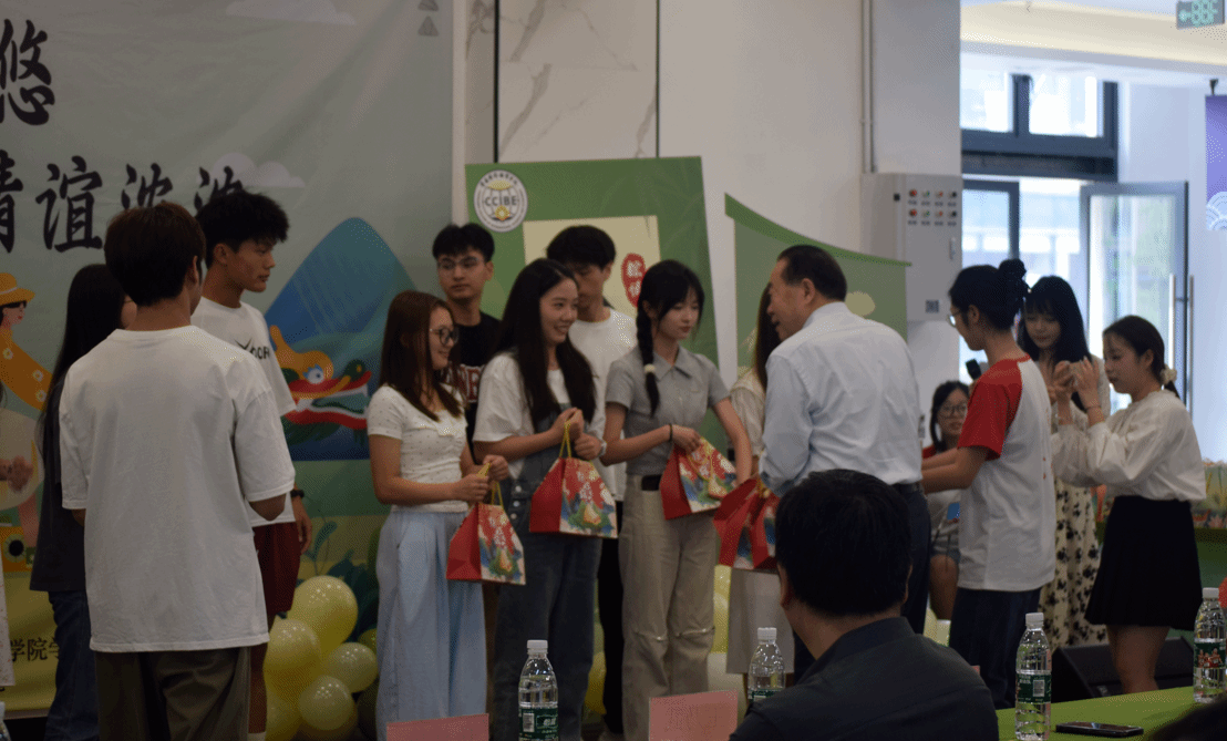 粽香悠悠送关爱,情谊浓浓伴成长。在端午佳节即将来临之际,为进一步弘扬中华民族优秀传统文化,丰富校园文化生活,营造温馨浓厚的节日氛围,体现对广大学子的慰问和关怀,6月6日下午,学校在B校区致园食堂开展“粽香悠悠,情谊浓浓”端午慰问活动。学校常务副校长王乃武、党委学生工作部部长、艺术设计学院院长等领导一行莅临出席。