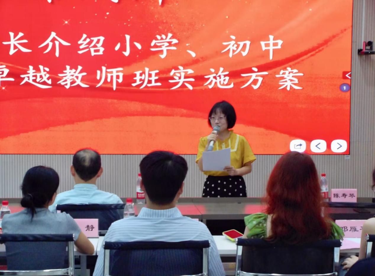 图为陈寿琴副院长介绍小学初中卓越班教师培养班实施方案