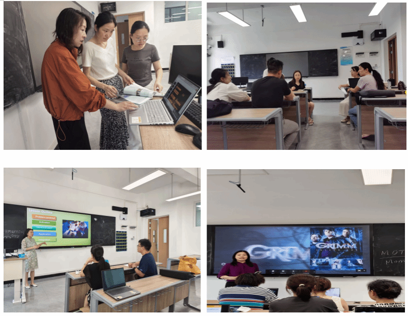 在多轮的磨课中,老师们严格遵循“集体备课—个人试讲—小组反馈—多轮优化”的闭环流程,在反复演练与深度互评中精炼设计、锤炼语言、夯实逻辑。同时,课程思政得到深度融合,比如《英语阅读》《商务英语写作》课程中,老师们巧妙引入“大语言模型与人类发展”等前沿议题,探索推动教学目标从“语言训练”向“认知提升”与“价值塑造”跨越。最终,21个课程组均形成了兼具前瞻理念与技术融合的数字化教学创新方案,为学院教学改革提供了可复制、可推广的样板经验。