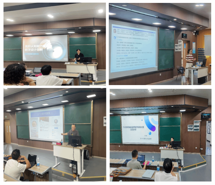 培训内容涵盖三大维度:王玉云教授以“两性一度”标准为纲,主持《高阶认知能力培养》与《教学创新设计》工作坊,引导教师实现从“知识传授”到“学习设计”的角色转型。在数智技术层面,重庆师范大学向小婷博士、潘攀博士等专家系统讲解了AI工具在教学设计、高效备课中的实战应用,强调了“提示语设计”与“学情适配”的关键作用。同时,谭小勇副教授、钟晓燕副教授等则深入探讨了“人机协同”教学新范式与技术伦理风险,为教师划清了创新与安全的边界。此外,针对应用型人才培养与毕业论文指导等实际需求,刘峻伶副教授、杨坤教授也分享了宝贵经验,为教师提供了扎实的理论与实践支持。